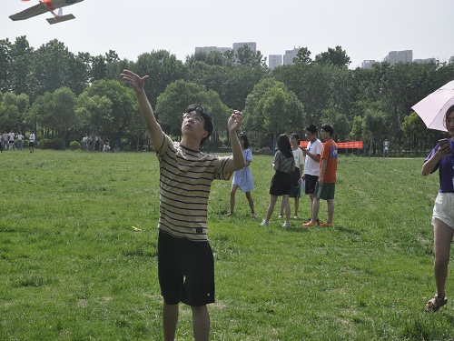 烈日炎炎也挡不住大家参加此次比赛的热情,大家早早的来到比赛现场,所有参赛队员签到之后,进行一系列的试飞测试,然后开始自己的比赛。比赛的规则是每队参赛者可以将自己用皮筋固定的飞机模型抛向空中,以他们在空中飞翔的时间长短作为比赛标准。每个干事负责一个小组计录他们作品的飞行时间,然后在做比较,决出最后的最佳作品。每个小组成员带着自己的期盼,在找准发射的角度与高度之后,放手起飞手里的飞机,让其在天空中划过一条又长又远的弧线。每个参赛者的作品都是经过自己反反复复的改装,一次又一次的实验让他们对自己的作品满怀信心,他们在赛场上努力实现着自己的飞翔之梦。比赛在欢声笑语中进行,经过一个小时的激烈角逐,此次大赛圆满结束。值得一提的是,不同的队有不同的制作方式,他们大胆发挥自己的创新想法,将此次的皮筋飞机制作的精致又实用。“这次的比赛提高了我的动手能力,我也结识了很多新的朋友,我很开心。”赛后一位参赛选手如是说。