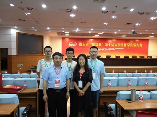 7月21日至7月23日,山东省“明晟杯”第十届大学生化学实验大赛如期举行,本届大赛比赛地点定为济南大学。经过激烈的校内选拔赛以及为时一周的校内培训,我院孟庆国、张继达、孙伟等三名同学代表我校参加此次竞赛,周子彦、柳玉英两位老师担任带队指导老师。