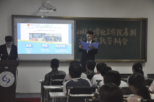 与会人员有序签到后,答辩会正式开始。会议伊始,主持人介绍答辩规则,每个团队答辩时间规定为五分钟,其中前三分钟为团队主讲人借助ppt等形式辅助实践讲述,后两分钟为评委提问回答时间。23支团队依次上台进行答辩。此次社会实践项目十分丰富,环境调研、支医支教、绿色化工等社会焦点话题,实践地点遍布省内各个城市及部分其他省份。首先团队负责人先讲述在时间之前的准备工作。其次,负责人通过照片、视频、图表、文字等方式展示团队人员实践过程。紧接着,他们介绍自己团队对实践内容的新闻宣传,通过新闻微信等途径让更多人了解自己的社会实践。最后,负责人总结此次实践活动的收获与感想。评委就实践内容、实践效果、调查问卷等方面进行提问并提出建议,帮助实践团队更好理解社会实践的意义与价值。答辩结束后,一位团队负责人接受采访时说到:“通过此次的暑期社会实践,我了解到大学生就业的艰难情况,同时,也让我坚定努力学习专业知识的决心,提高自身竞争力,为找到一份心仪的工作而努力。”