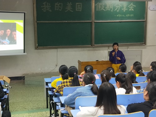 9月26日晚,我院在5号教学楼101、103教室举行“我的美国假期分享会”。“大学生暑期赴美带薪实践活动”项目负责人叶德舜出席本次分享会并为同学们答疑,我院2015级学生何持艺为同学们分享赴美带薪实践活动经验收获,2018级学生参加此次分享会。