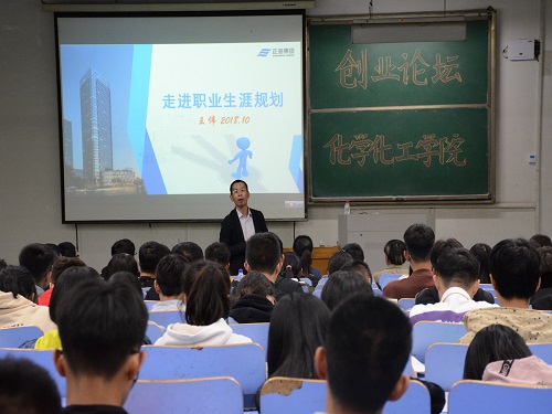 活动尚未开始,学生有序签到入场,会议伊始,主持人简单介绍主讲人,随后演讲正式开始。王伟从什么是职业生涯规划;为什么进行职业生涯规划;如何进行职业生涯规划三个方面为在座学生进行演讲。首先,他现身说法,用实际事例告诉大家创业并不是遥不可及,创业就在我们身边。接着他为大家讲解一些关于创业的专业概念,为了让大家便于理解抽象的创业概念,他结合自身经历用通俗易懂的语言向大家讲解。随后,他通过引用"知人者智也,自知者明也","宜未雨而绸缪,毋临渴而掘井"等几句名言引导在座学生思考为什么进行职业生涯规划,他说道:"作为大学生,现在要明确自己的定位,了解自己的特长和不足,未雨绸缪,汲取知识促进自己全面发展,为今后职业生涯规划奠定基础。而且,一艘没有航行目标的船,任何方向的风都是逆风,要明确自己奋斗的目标。"同时,同学们也了解到当今社会不仅需要熟练掌握和应用专业知识技能的人才,还需要具有创新意识的高素质人才。而优秀的创业技能是每位想要或将要创业的创业者的必备素质。最后,关于如何进行职业生涯规划,他从创业方向选择、职业定位、目标设定及未来规划等方面教大家制定行动方案。演讲完毕,他与同学们互动交流,针对学生提出的问题一一进行解答。