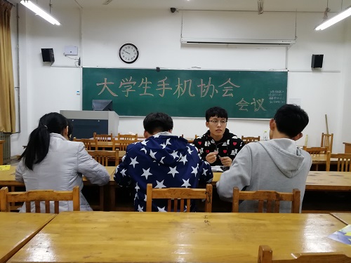 金秋十月,化学化工学院社团联合会干事纳新工作顺利完成,为安排本月工作,促进社团发展,提高工作效率,10月12日晚,大学生手机协会会长王新健及所有副部在13号教学楼401教室举行会议。