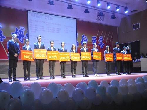 为激发同学们发奋学习,争做“五有人才”。晚会期间举行各类社会奖助学金的颁奖仪式,由各企业领导分别向“金城石化奖学金”、“瑞诺助学金”、“英科医疗科创奖”、“英科医疗学风班奖”、“英科医疗学风宿舍奖”、“一诺威董事长奖”、“一诺威十佳大学生奖学金”、“一诺威单项奖学金”获得者颁奖,几十名品学兼优的学生获得表彰。在同学中树立良好的学习榜样。颁奖仪式上,各企业领导与观众互动参与了抽奖活动。最后,晚会在歌曲串烧中落下帷幕。