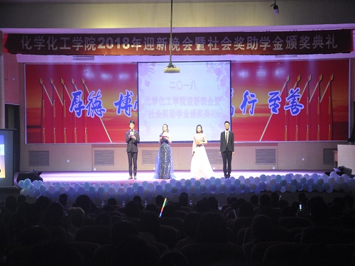 逐梦理工大,新征程扬帆。11月20日晚,学院在三号报告厅举办“逐梦新程,筑蹈韶华”主题迎新晚会暨社会奖助学金颁奖典礼。学院党支书记陈靖,副书记李冰强,副院长王平,学工办主任曹晓媛,辅导员侯振中、王菲、张永出席此次晚会,学院邀请山东金诚石化集团、山东一诺威聚氨酯股份有限公司、英科医疗有限公司,瑞诺化工科技有限公司等友好企业代表出席晚会。晚会吸引各学院同学前来观看。