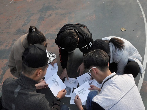 此次活动采取大学生乐于接受的团队形式,可自由组队参加活动。活动开始前,主持人讲到此次活动共分为三个环节。各游戏相关负责人宣读游戏规则并现场进行演示。此时,场上火药味十足,各个队伍早已整装待发、跃跃欲试,希望自己的队伍可以取得胜利。游戏流程和规则宣讲完毕后,游戏正式开始。