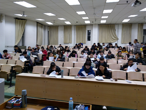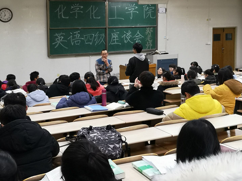 为迎接四六级考试,增强同学们的应试能力,使同学们熟悉四六级考试的各类题型。12月13日晚,化学化工学院邀请四六级主讲嘉宾郑彬,于4号教学楼205教室举行四六级模拟试题讲解。