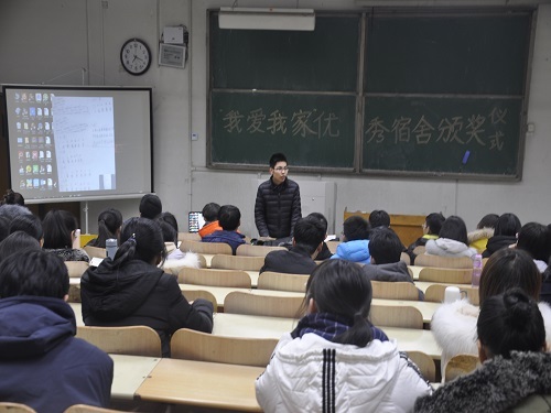 为提高宿舍文化氛围,建设卫生、安全、文明、有特色的团结宿舍文化。12月16日晚,化学化工学院学生宿舍管理委员会在五号教学楼104教室举行“我爱我家”优秀宿舍颁奖仪式。学院优秀宿舍舍长参加此次活动。