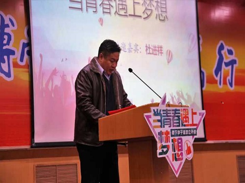 活动伊始,李冰强为此次活动致辞,对应邀而来的杜进祥表示欢迎。他讲到我校始终坚持“以人为本”的教育教学理念,厚植“五有”人才培养沃土,为青年学生搭建了成长成才、实现自我价值的广阔舞台。希望同学们秉承“厚德、博学、笃行、至善”的校训,在属于自己的青春时代,早日实现自己的梦想。随后,杜进祥进行“生逢其时,自当以梦为马,昂首砥砺前行”的主题演讲。他以自身科研项目为切入点吸引同学们的兴趣。他表示做科研需要善于思考勇于创新,在学习中不断培养自己清晰的思维逻辑。紧接着,杜进祥根据自身的实践经历分享自己在社会中收获的宝贵经验,他鼓励同学们通过实践开阔自己的眼界并提高解决问题的能力。他突出强调,当代青年应当认清自身责任与担当,立足当下勇做时代的弄潮儿。杜进祥勉励同学们将行动与梦想紧密结合,通过行动创造有价值的青春。随后,现场同学从生活、学习、活动等不同方面积极提问,杜进祥对同学们的问题逐一解答。