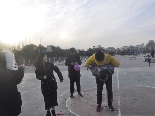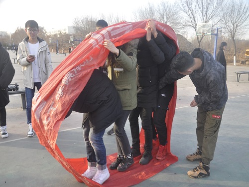 活动伊始,赵嘉辉表示,他希望参与人员在活动中遵守规则,积极投入到比赛当中,能结识新朋友,有所收获,有所提高。随后,任东伟介绍比赛项目及比赛规则。之后裁判员代表及运动员代表宣誓。此次活动分为“绿野寻踪”“无敌风火轮”“趣味答题”“背对背拥抱”四个项目。首先进行的是绿野寻踪,每组在裁判员提前拍好的60张照片中随机抽取4张。在校园里找到图片中的景物。小组全部成员同队旗同图中4个景物全部合照后完成任务。在此期间,每队的成员不惧寒风,搜索着脑海中见过图中景物的地点,奔跑在寻找目标的路上。随后是无敌风火轮,每小组成员须在用胶带和报纸制作的可以容纳全体队员的大圆环内,边走边滚动大圆环。全部路程走完后完成任务。在此期间,小组成员团结一致,步伐统一,互相鼓励。极大的提高了小组成员的团队协作能力。趣味答题,小组成员争分夺秒,不断的搜索着脑海中的知识,互相商量,不断思考。让参与人员在乐趣中复习化学知识。“此次活动不仅锻炼了我们的身体,提高了我们的团队协作能力,我们还从中收获了友谊。”一位同学如是说。