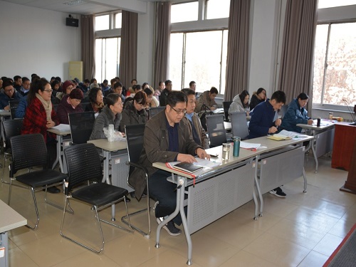 王平副院长宣读学院2018年度奖励性绩效工资分配办法并进行解读。学院全体教师进行热烈的讨论,认为此办法公平公正,充分体现按劳分配的原则,最后举手一致通过。