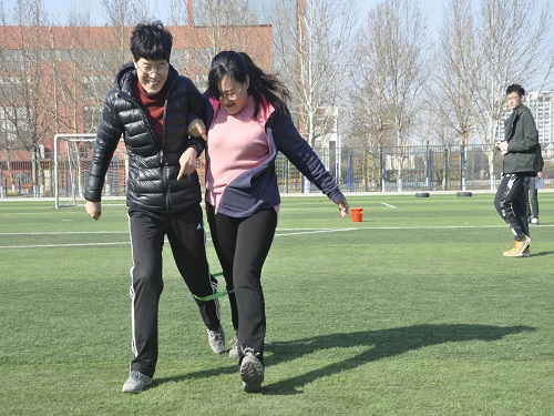 比赛分为三个队伍,分别为化工队伍、化学-应化联队、冶金-实验中心-团总支联队。此次趣味运动会共包括:综合接力,海底捞月,背向投毽入筐,足球射门,趣味扑克牌,一圈到底六个主要项目。运动会伊始,李冰强首先讲到:“望大家通过此次趣味运动会能够加强交流,积极锻炼。”随后运动会正式开始,各个队伍的表现都非常出色。在"综合接力"的比赛过程中,教职工们面临多样的困难,托球跑考验平衡力,二人三足跑则考研队员们心心相映、齐心协力的默契程度,虽然行动不方便、状况百出,但是通过合作,相互搀扶着跑到终点,队员们的脸上都露出微笑。“海底捞月"要求教职工背对着队友,从胯下或者头顶将篮球传递给下一个教职工手中,随着篮球在教职工的手中相互传递、上下起伏,便顺利的完成了这项比赛。“背向投毽入筐”和“趣味扑克牌”由于难度较大,难倒了许多教职工。"一圈到底"需要小组队员手牵手围成一圈,将呼啦圈穿过所有人的身体回到原位,这可是对身体柔韧性的考验。"足球射门"则考验教职工的身体协调性,在教职工的努力下,便轻而易举的完成目标个数。在运动中,教职工卸掉生活和工作的压力,在暖暖的春日里迸发着活力。他们通过团队合作和自身的努力,在取得满意成绩的同时,既锻炼了身体,也促进了友谊。
