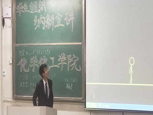 为壮大学生干部的队伍,提高学生组织办事效率,4月3日晚,化学化工学院于五号教学楼201、203教室举办学生组织纳新宣讲。本次活动由学生会及社团联合会各部长主持宣讲,全体同学积极参与。