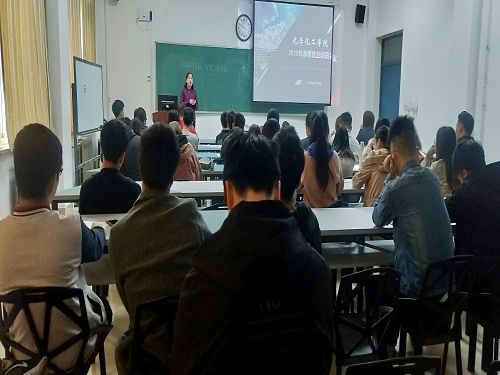 为优化2019届毕业生的就业意识及能力,切实提高学院的整体就业质量,4月19日早上,化学化工学院在13号教学楼402会议室召开2019年春季就业动员会议。党总支副书记牟海萍,学生办公室主任曹晓媛,辅导员高勇、赵佳佳,神户东洋日本语学院山东事务所负责人李春艳和部分毕业生参加此次会议。