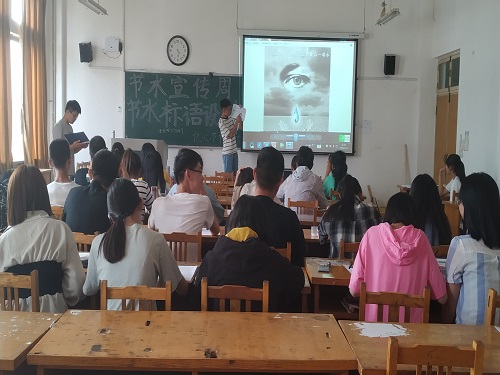 活动伊始,主持人以PPT的形式向大家展现如今世界水资源情况,紧接着讲解了此次活动的大体流程,然后标语设计正式开始。制作刚开始时,每组的选手都在认真思考,并时不时和同组同学讨论,现场气氛火热。标语制作进入后半段时间,现场渐渐安静了,每位选手都在紧张有序的对作品进行最后的绘制和修改。紧张的绘制结束以后,每队出一位代表上台讲解他们作品的寓意,一句句讲解不仅展示了他们的作品,还有他们对节水的态度。同时,台下其他队伍秉持公平公正的原则给台上队伍打分。