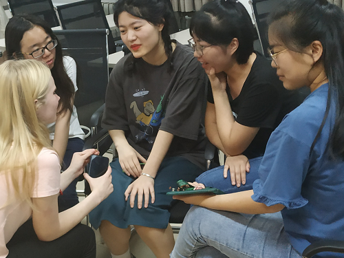 第二个环节是游戏。首先开始的是猜数字游戏,主持人示范进行第一轮游戏,很好地调动同学们的积极性,调节了气氛。接下来的词语接龙游戏将活动推向高潮。同学们积极参与,以敏捷的思维将一个又一个的词语顺利接龙。随着游戏的进行,难度也逐渐升级,有些同学没有接上词语,只能向大家展示自己的才艺。最后一个环节是自由谈话,同学们围坐在一起,同他人交流。其中,李俊孝热爱旅游,并向大家分享了他去过最美丽的地方和暑假计划。最后,同学们和工作人员一起拍了合照,每个人的脸上都洋溢着笑容,活动在笑声中结束。