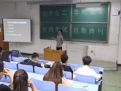 为增强学生的组织能力,提高学生的实践创新创优能力,5月24日晚,化学化工学院在5号教学楼101教室举行社会实践创优技能培训。往届优秀实践团队队长徐超凡、任东伟担任主讲人,学生会相关负责人和班级负责人参加此次培训。