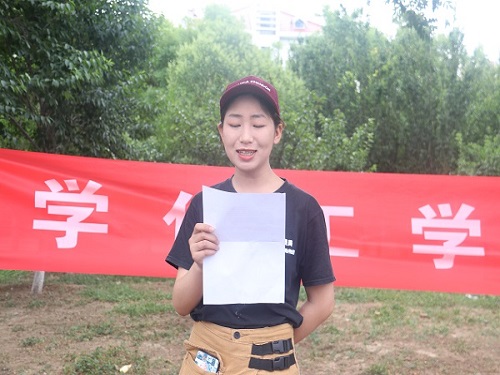 活动开始前,各班代表队、裁判员、学生干部代表到指定位置按顺序站好。活动伊始,运动员代表代表全体参赛成员发言,他表明运动员们参赛的热情以及将会恪守参赛制度的态度。随后,裁判员代表全体裁判发言,发言中表达了遵守裁判员纪律规则,秉着公平、公正、公开的原则,保障趣味运动会的顺利开展。