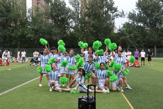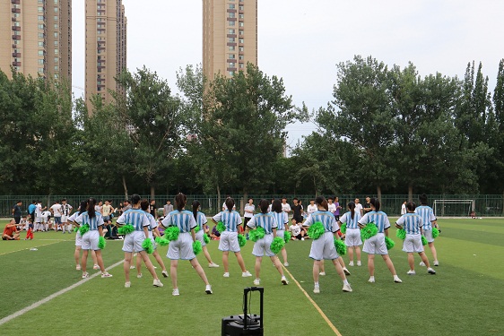 此次比赛是由足球赛与啦啦操比赛交替进行。啦啦操比赛过程中,各学院代表队依次进行展示。她们迈着自信的步伐,尽情表演。表演完成后,由各位评委老师进行打分。此次啦啦操比赛分两次完成,每次四个队伍。足球比赛和啦啦操比赛的成绩分别由裁判长袁明辉和王丹宣布。宣布完成后由各个代表队依次上前领奖。