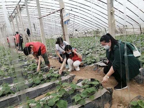 8月26日至27日,在王杲铺镇工作人员的带领下,团队成员进入蔬菜大棚,观摩大棚内黄瓜的生长状况。当地黄瓜以“杲牌”黄瓜闻名,清脆可口,实践团成员在相关工作人员的指导下帮农民采摘黄瓜并运输黄瓜到临近市场,体验黄瓜种植与售卖的过程。