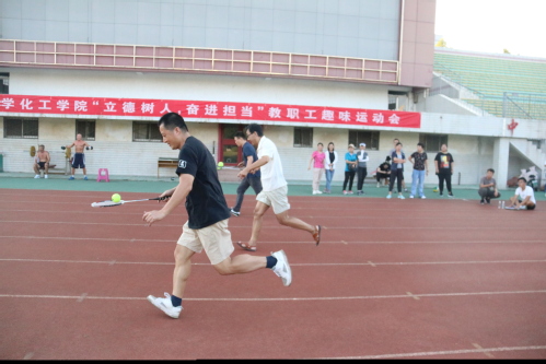 在第36个教师节来临之际,为更好地丰富教职工文体生活,提升全院教师的干事创业凝聚力、向心力,9月10日下午,化学化工学院在第二体育场举办“立德树人,奋进担当”教职工趣味运动会。党总支书记赵增典、分工会主席牟海萍及化学化工学院教职工参加。