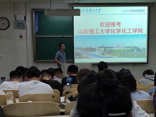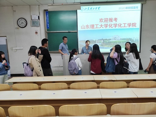 周晋通过多媒体介绍我院的学院概况及学院简介,同时,根据今年的总体考研形势分析报考难易程度,为报考同学提供考研经验。他强调,科学研究的诸多硬实力是我院值得报考的原因之一。淄博区域的产业优势,可以实现校企联动,学校科研力量帮助企业解决生产问题,企业为科研提供资金支持,从而建立优秀学科,做好人才培养工作,实现科研创新与社会服务,通过校企交流合作,提高社会影响力,形成良性循环。