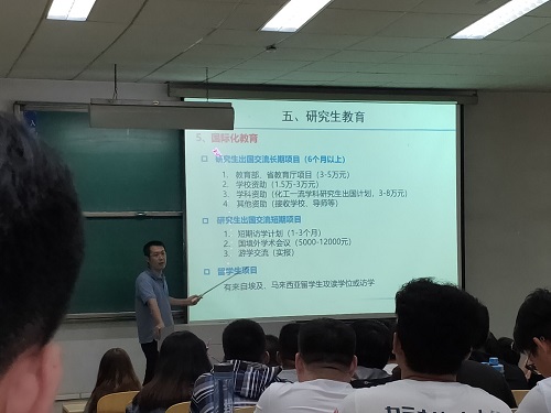 9月29日下午,化学化工学院在5号教学楼304教室召开硕士研究生招生宣讲会。此次宣讲会由院长助理周晋担任主讲人,指导教师庄淑娟及部分同学参加本次宣讲会。
