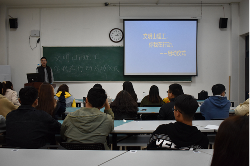 10月29日下午,化学化工学院于13号教学楼402会议室举行“文明山理,你我在行动”志愿服务活动启动仪式,辅导员张永担任主讲人,青年教育部、先锋社、亿心节俭之家全体成员参加。
