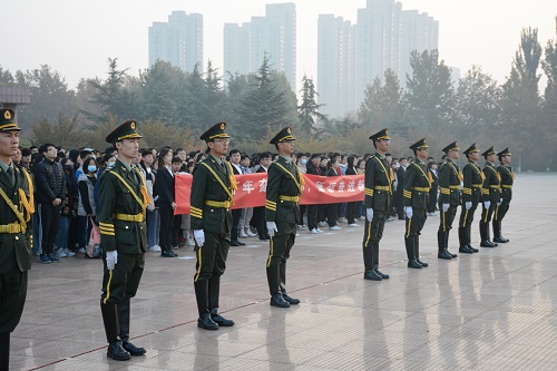 11月2日清晨,化学化工学院在鸿远楼南广场举行以“实现百年奋斗目标,砥砺奋进新时代”为主题的升旗仪式。党总支副书记牟海萍、辅导员、学生组织各负责人及19、20级全体学生参加此次升旗仪式。