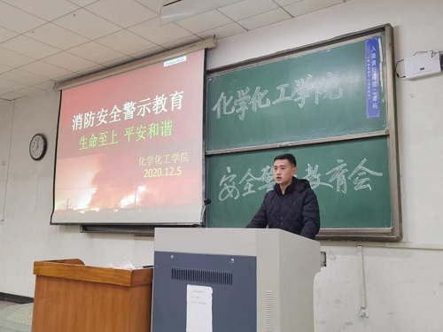 12月5日晚,我院组织开展化学化工学院安全警示教育会,辅导员任前树主讲,我院使用电动车的全部学生参会。任前树通过图文并茂的形式,从火灾发生的危害入手,讲解了近年发生的多起重大火灾事故的实例,用触目惊心的画面警示学生,让同学们认识消防安全的重要性。