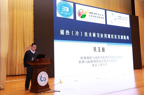 吴玉庭就储热技术的研发应用现状及发展趋势作报告。他提到,储热是仅次于抽水储能的第二大储能技术,在太阳能光热发电、太阳能供热、弃风弃光或谷电加热蓄热供热、火电厂灵活性改造、间歇工业余热回收利用、空调储冷、分布式能源等领域得到广泛应用,装机容量达1000万千瓦以上。他还讲道,相变储热包括有机相变和无机相变储热技术,具有蓄放热温度变化小、储能密度大的优点,但存在导热系数低、成本高、过冷和晶液分离的技术缺陷,其发展趋势是研发当量导热系数高的长寿命复合相变蓄热材料,大容量相变储热装置的传热强化与性能调控;而热化学储热具有储热密度大的优势,但存在技术不成熟、储释热过程控制难等缺陷,其发展趋势是新型储热介质对的筛选、储释热循环的强化与控制等。