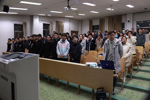 最后,全体同学歌唱《我和我的祖国》。赵意讲道:“为天地立心,为生民立命,为往圣继绝学,为万事开太平。作为新时代的青年人,我们应心怀祖国,努力学习,投身时代洪流。”