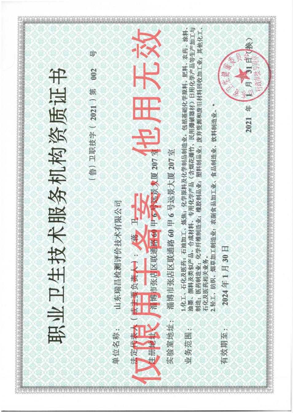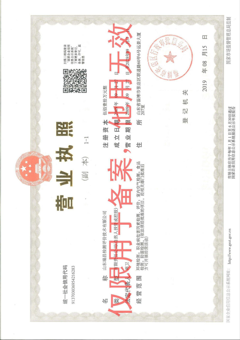 山东瑞昌检测评价技术有限公司成立于2009年9月,是一家专业从事职业病危害因素检测、建设项目职业病危害评价、环境检测的专业技术服务机构。2010年7月首次通过山东省质量技术监督局审核取得实验室计量认证证书,2017年03月延续并取得山东省质量技术监督局颁发的检验检测机构资质认定证书,2021年01月取得山东省卫生健康委员会换发的职业卫生技术服务机构资质证书。