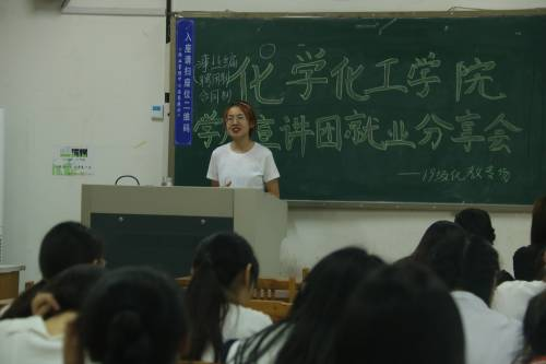 为充分发挥优秀青年学生的榜样示范引领作用,激励我院学子立志成才,不断进步和成长,5月29日晚,化学化工学院在13号教学楼401、407教室举办考研就业经验分享会第三期。学生会学生发展部就业志愿者主持,化教1701林文静、杨艳丽担任主讲人,化教19级学生参加。