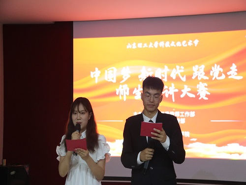 为庆祝中国共产党成立100周年,营造共庆百年华诞的浓厚氛围,增强广大干部师生爱党信党护党跟党走的信心和决心,化学化工学院举办山东理工大学科技文化艺术节(2021)“中国梦·新时代·跟党走”师生宣讲大赛。此次活动由化学化工学院承办,各学院推选优秀作品参加,活动分为初赛、决赛两部分。