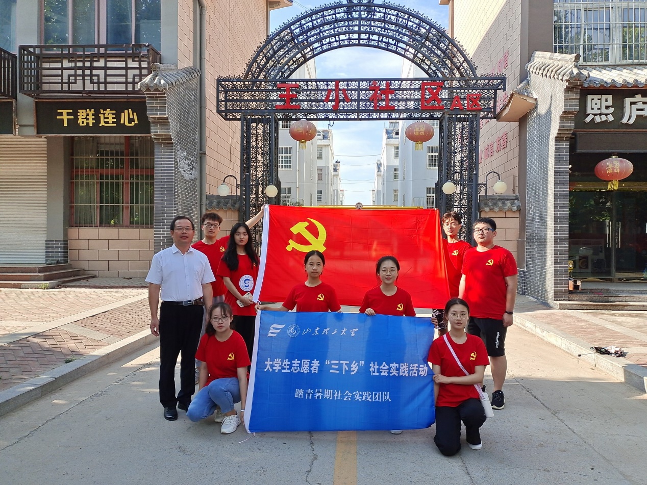 7月18日下午,山东理工大学踏青实践团全体成员在东夏镇综合文化服务中心对王小村党支部书记王云进行采访,并一同参观王小社区。