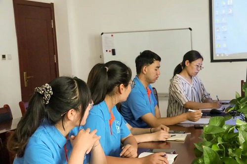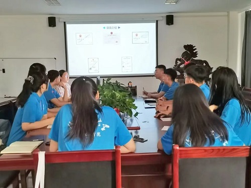 实践团队抵达公司后,负责对接的是综合事务部部长刘桂红,队长张家乐向刘桂红做自我介绍并表明此次团队走访的目的。接着,团队跟随刘桂红走进会议室,刘桂红用幻灯片放映的方式为团队成员介绍公司简介、创建历史以及该公司对专业人才的需求。