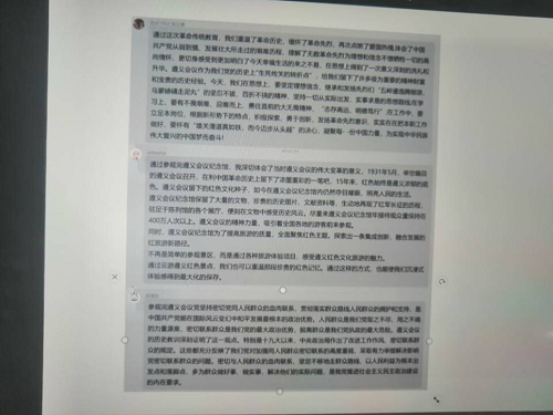 线上学习结束后,团队成员对本次学习发表自己对本次学习的感悟,团队成表纷纷对遵义会议的伟大召开表示由衷的敬佩,同时团队成员线上分享对于参访遵义会议会址这一红色革命圣地心中的感悟,将遵义会议精神在大学生团体中传承发扬。
