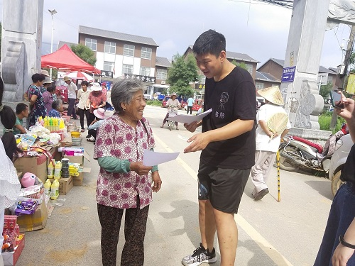 早上8点,团队成员带着“宣传党史,不忘百年”的初心及使命,走向蒙阴县的集市,在团队负责人的指引下有序的进入集市展开党史宣传。本次开展的主题宣传活动为“宣传党的新政策,了解党的新篇章”,依照全国两会在2021年提出的新政策,为集市中的百姓讲解并普及相关知识。团队成员与老人们谈到的最多的便是花果庄村近年来的变化,近年来,在党的支持和鼓励下,村庄有了很好的发展。花果庄村虽然处于沂蒙山脚下,应当为旅游圣地,但因为从前的开发不当,导致此处人迹罕至,很少有人会来到这里,对当地的经济推动也没有任何作用,但自从青年党员来到花果庄村后,对旅游事业进行了全面的改善和提升,大力推动了旅游业的发展,使当地经济效益逐渐增高。团队成员也借此机会向老人们讲述中国共产党的发展历程,同时团队成员说到:中国共产党是中国工人阶级的先锋队,同时是中国人民和中华民族的先锋队,是中国特色社会主义事业的领导核心,代表中国先进生产力的发展要求,代表中国先进文化的前进方向,代表中国最广大人民的根本利益,党的最高理想和最终目标是实现共产主义,我们要为此共同奋斗。