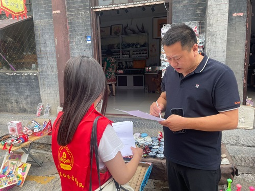 上午,冉冉红旗社会实践团到达古城后从北大街开始走访商铺开展调研,团队主要围绕旅游业快速发展给商铺带来的影响、客流量、政府的支持力度、旅游业快速发展后古城环境的变化等问题开展调研。据了解,以北大街为主的古玩、字画等商铺受旅游业冲击比较大,因为宣传力度比较大导致游客们对古玩字画的真实性有所怀疑,并不愿意在古城购买古玩字画。而以地方特色小吃、美食为主的南大街的生意明显提高,游客们边吃边玩,南大街商铺的游客络绎不绝。