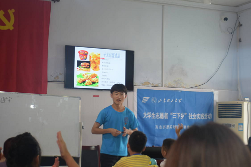 七月二十二日,山东理工大学“齐志齐愿”暑期三下乡社会实践团在炎热的夏日里,支教志愿者再次背起知识的行囊,踏上了去村委教室的路。
