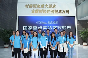 第一站,荣婷婷带领队员来到氢能技术示范中心,讲解员于心琪带领队员来到国家重点实验室,研发工程师丁涵带领团队成员参观实验室,他说到公司大致有三大主攻:树脂、膜材料、精细化学品,其中膜材料的国产氯离子膜被称为争气膜,在东岳化工公司产出氯碱离子膜之前,国家只能从国外购进此种膜材料,东岳生产之后国内氯碱离子膜在短时间内价格降低一半,为国家在膜材料行业做出了巨大贡献。此外还有燃料电池膜被称为争光膜,实验室里设有结构分析室、热分析室等对产品性能和寿命进行检测。