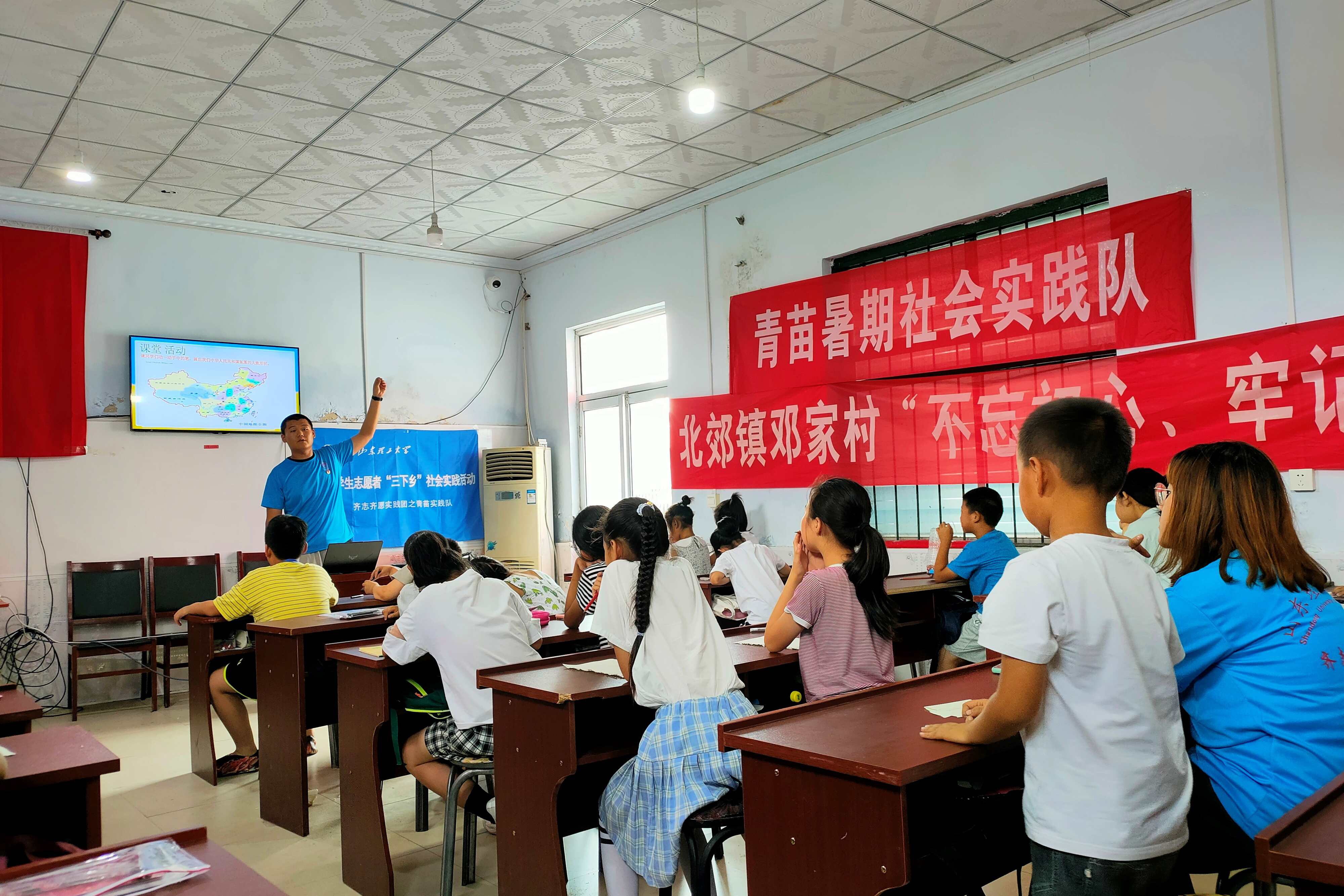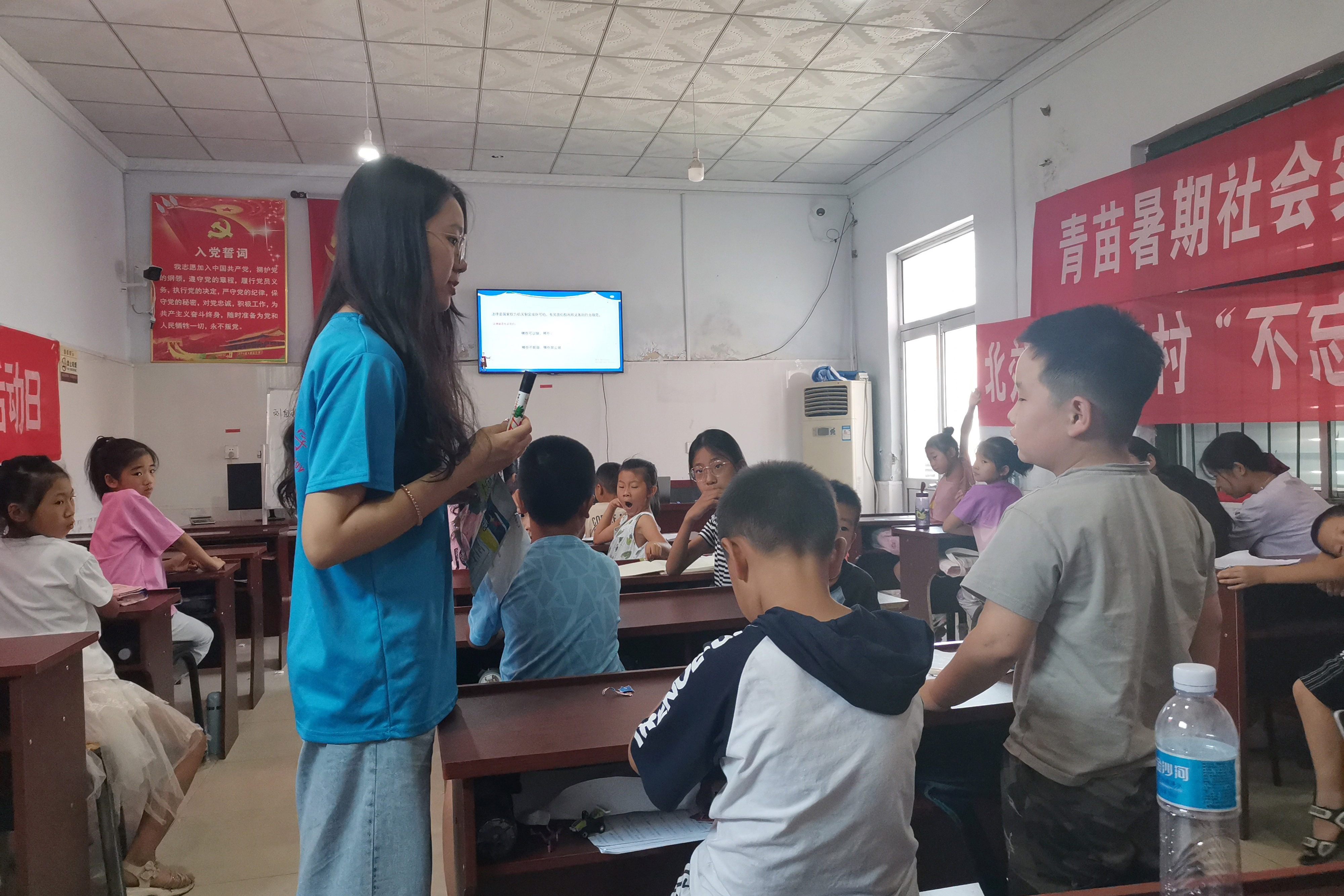 7月24日,实践团成员逐渐掌握每个孩子的知识储备量以及学习进度,能够根据不同孩子的不同个性和学习能力水平制定有针对性的教学方式。例如在讲较为专业的知识,实践团成员会对低年级的同学进行扩充解释;对较为内向的孩子,队员将以鼓励教育为主,激励孩子参与课堂问答,多与老师和同学交流;对较为调皮的孩子,实践团成员会对其额外关注,防止孩子在下课追逐打闹,也同时确保课堂秩序等。