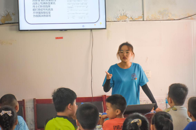 团委老师给孩子们带去学习用品,与孩子们一起在教室学习音乐。铿锵有力的《强军战歌》在教室回响,实践团成员还在老师的示意下,带头歌唱《团结就是力量》。音乐老师还带孩子复习《追梦赤子心》,团委老师听见孩子们铿锵有力的歌声,拿起手机录像,留下宝贵的回忆。