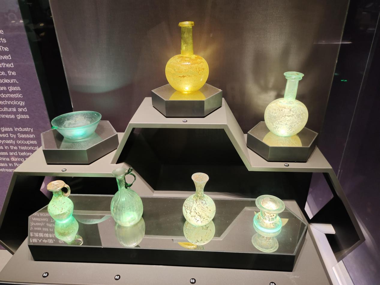 最后,实践队员们进入琉璃展厅。通过浙江、河南、山西等地区的考古学资料有力证明,队员们了解到,约当夏代时期,中国南方的浙江地区,已经在烧制原始瓷器的实践中,成功地创烧出青色玻璃质釉。在公元前11世纪的西周初期,甚而更早时期,中国已经用国产原料烧制出釉砂类琉璃饰品。