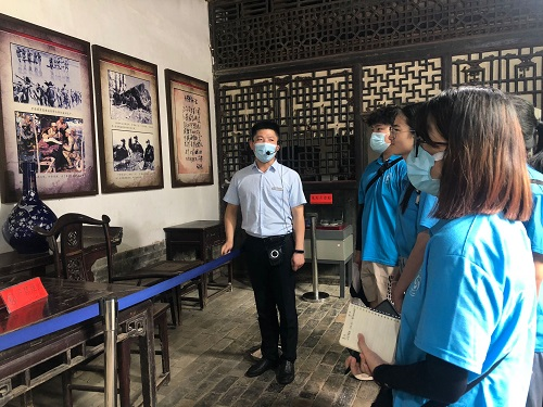 讲解员带领团队成员来到中共中央山东省委旧址和八路军115师司令部旧址。他向团队成员讲到山东的党政军领导机关之所以选择在莒南县见了革命根据地,是因为莒南县群众基础好、地理位置好、居住条件好。当时大店的庄氏家族是明清两代,跨越鲁、苏、豫、皖四个省区的名门望族。在当时许多开明的地主主动将自己的宅院献出,供革命长期使用,体现出了无私奉献的沂蒙精神。