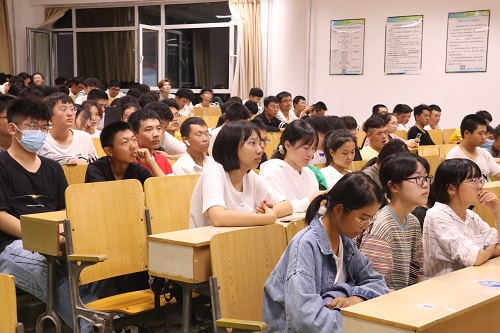 9月24晚,化学化工学院组织2021级新生在3号教学楼310、311、312、314、315教室观看“山理工,把我讲给你听”入学教育报告会。