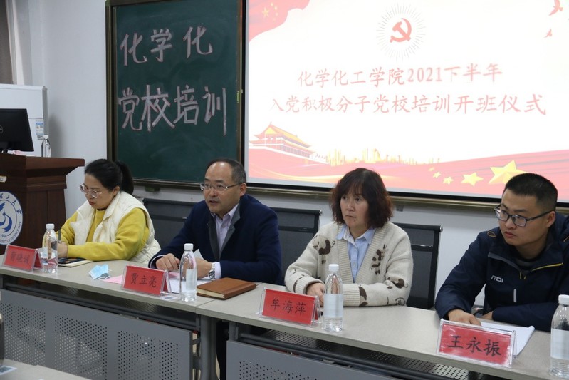 11月11日下午,化学化工学院在13号教学楼404会议室举行2021年第二期入党积极分子党校培训开班仪式暨第一专题党课培训。党委书记贾立亮、党委副书记牟海萍、团委书记曹晓媛出席,辅导员王永振主持会议,学院入党积极分子参加。