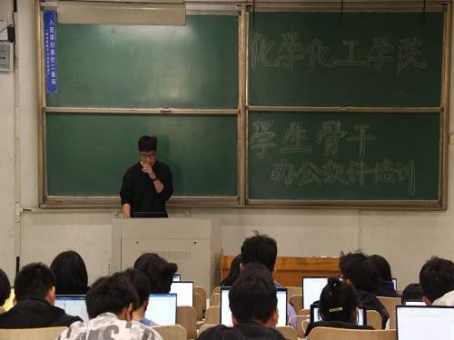 11月18日下午,化学化工学院在5号教学楼204教室举办学生骨干办公软件培训。学生会秘书负责人主讲,各学生组织骨干参加。