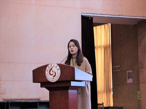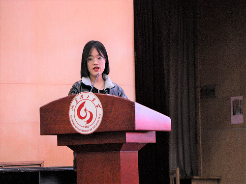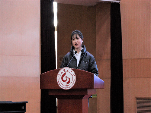 最后,化学1901班吕菲介绍了“英语达人的进阶之路”和她在英语方面获得的各项奖学金及荣誉称号。她重点讲述了学习英语、提高英语表达能力与应试能力的方法,并对“全国大学生英语竞赛”等各种比赛进行介绍和分析。同时,她提到学习之前要先学会做人,做事要堂堂正正、光明磊落、无愧于心。