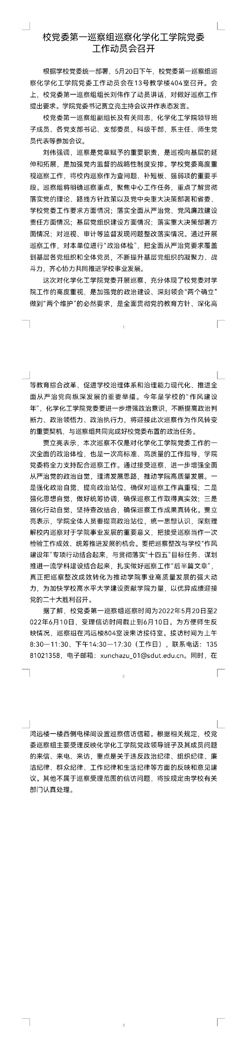 校党委第一巡察组巡察化学化工学院党委 工作动员会召开